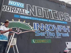 Apesar da experiência, o ofício de pintor de letreiros exige um rigor técnico que muitos desconhecem. Heberth explica que o segredo está no equilíbrio. “Eu tiro a matemática da parede, a metragem, e depois uso o golpe de vista e a criatividade. Precisa medir centímetro por centímetro para centrar a propaganda”, detalha.